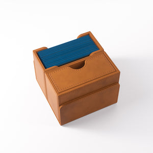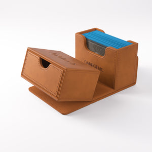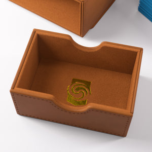 UNIQUE FEATURE: The innovative drawer compartment can easily be tilted to the side for convenient access to the pull-out drawer for tokens and accessories! The flap of the Deck Wallet is equipped with our highly rated CONVERTIBLE system. Strong magnets keep the setup stable and close the box safely. This premium deck box comes in a stylish and adventurous appearance with hot-stamped and foiled logos.